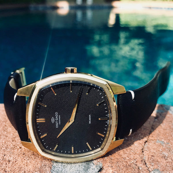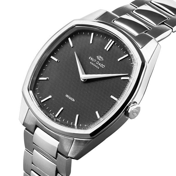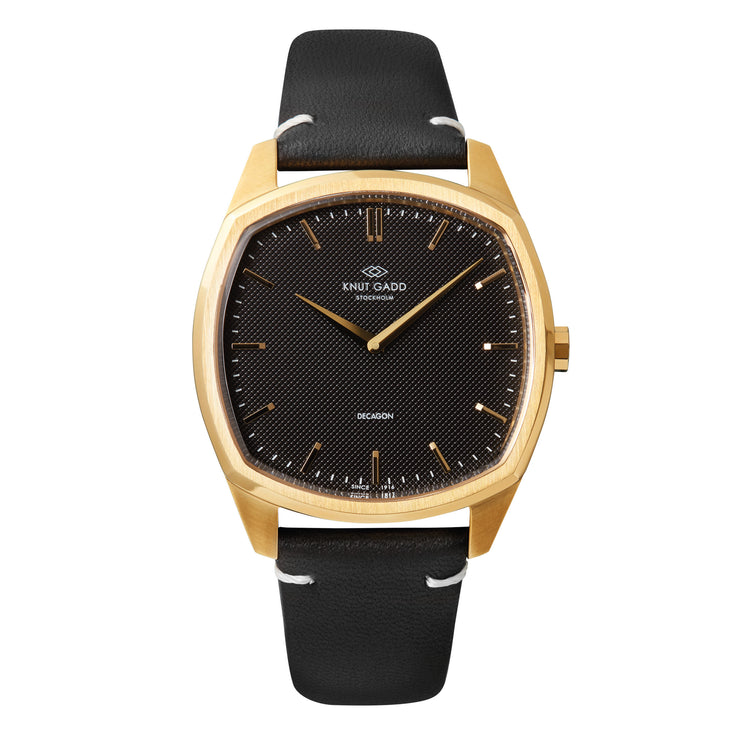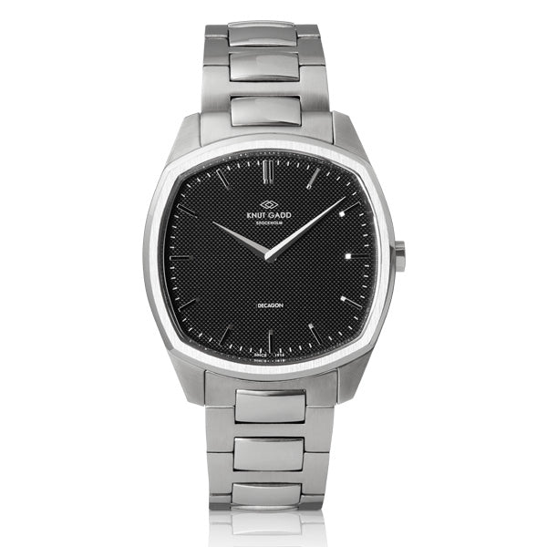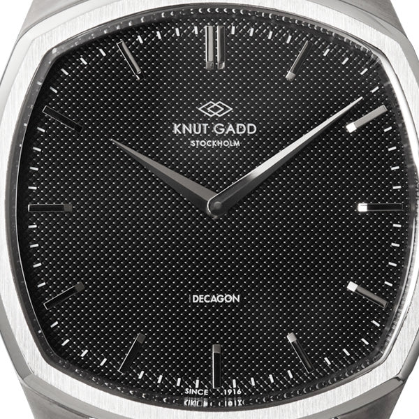 Knut Gaddのシグネチャーウォッチ、DECAGON(十角形)。 DECAGONの名の通り、時計のフェイス、リューズが十角形にかたどられています。