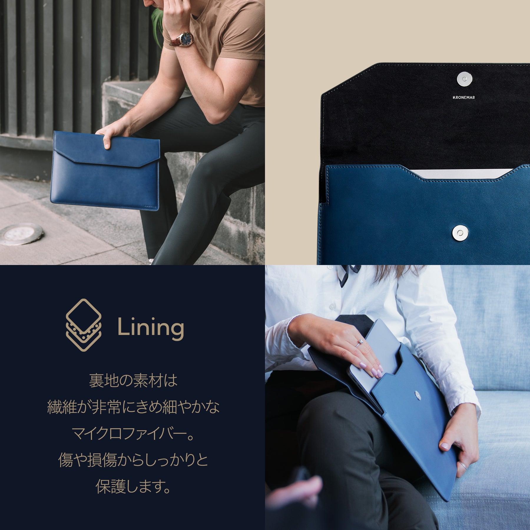 Kronemarのラップトップスリーブケースは、ビジネスはもちろん、旅行シーンでもあなたの最高のパートナーに。スカンジナビアのミニマリズム、高品質な素材、職人技術を融合したデザインで、コンパクトでエレガントなラインを実現しています。裏地はプレミアムベルベットを使用。傷や損傷のリスクからスタイリッシュに大切なノートパソコンを保護します。