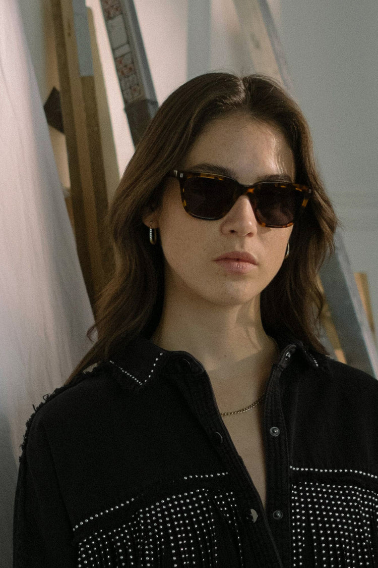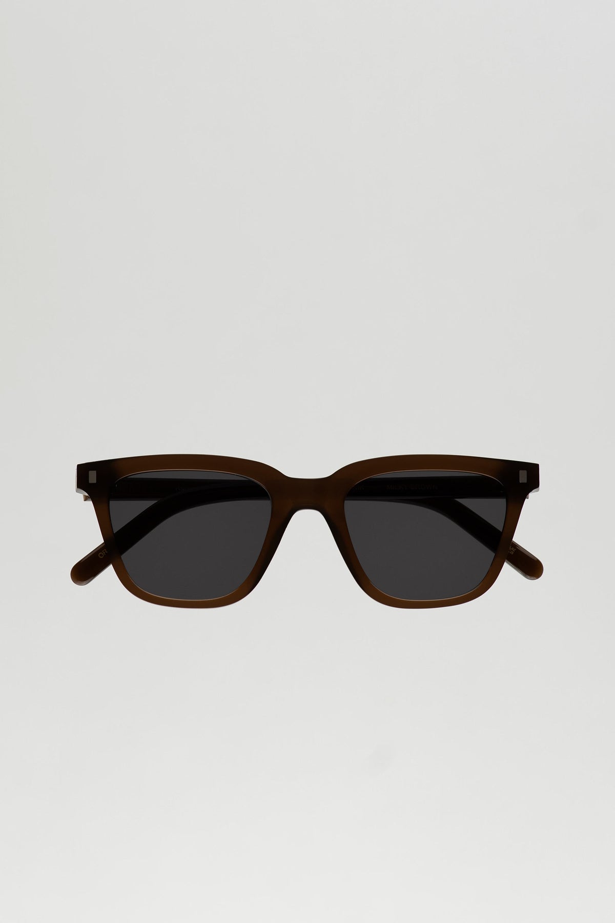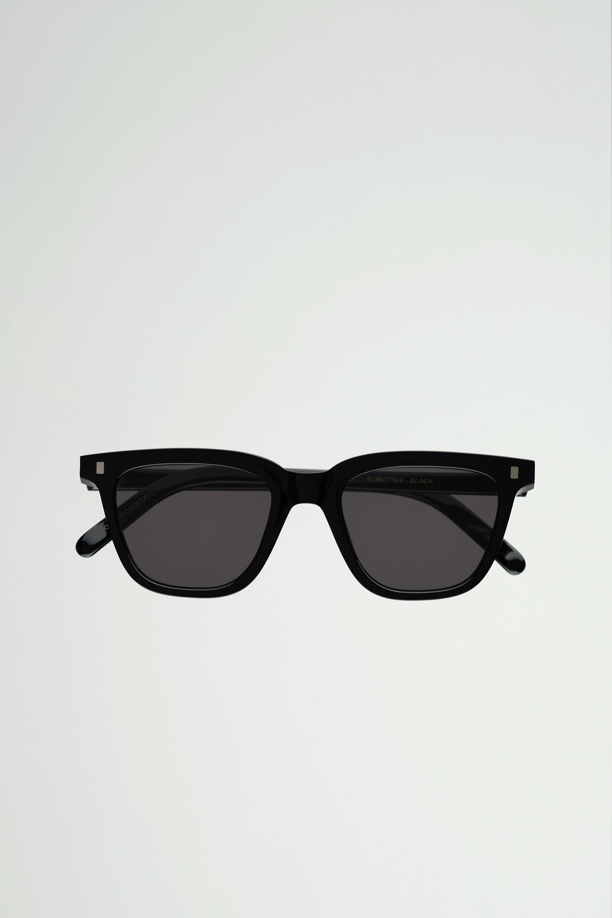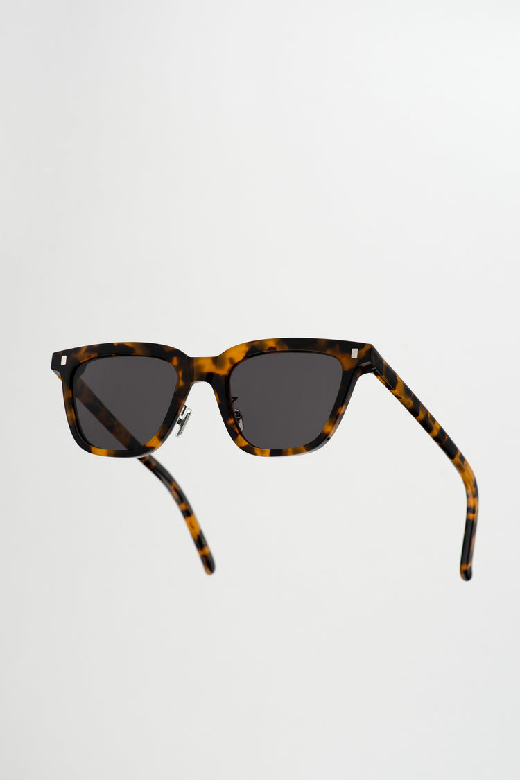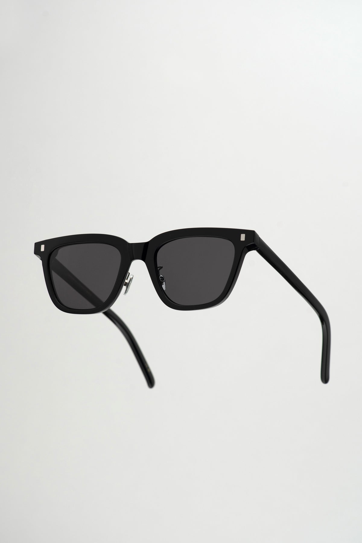 スクエアのレンズに長方形のリベット。シンプルなスタイルのようで、個性溢れるモデル。