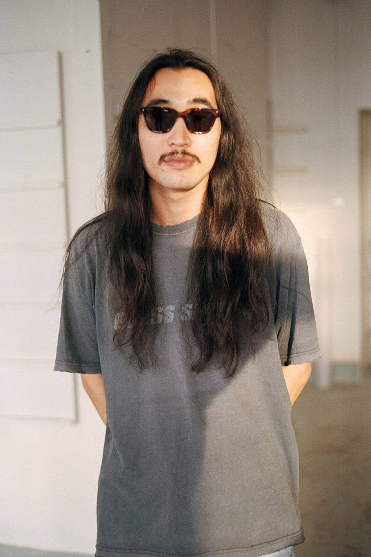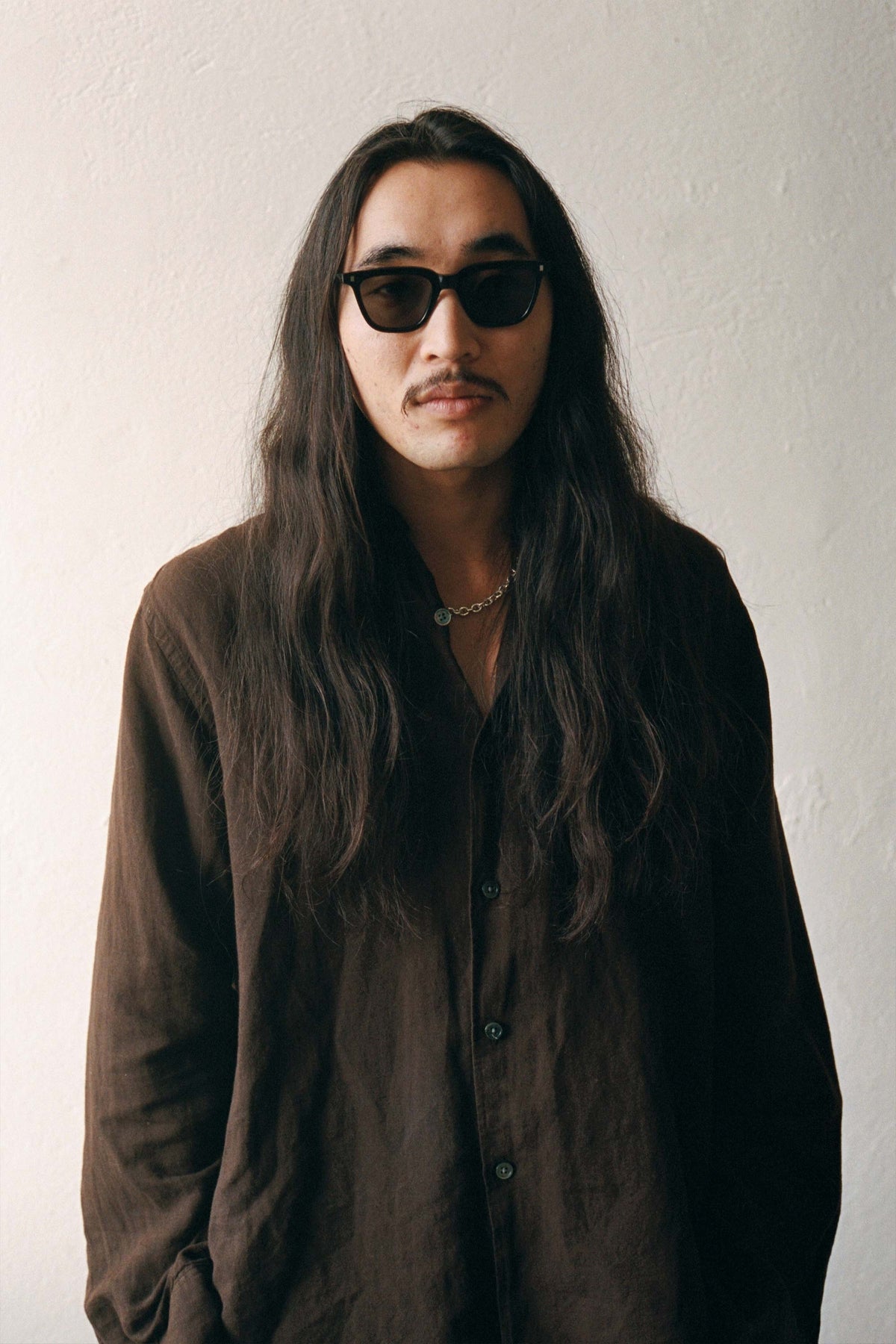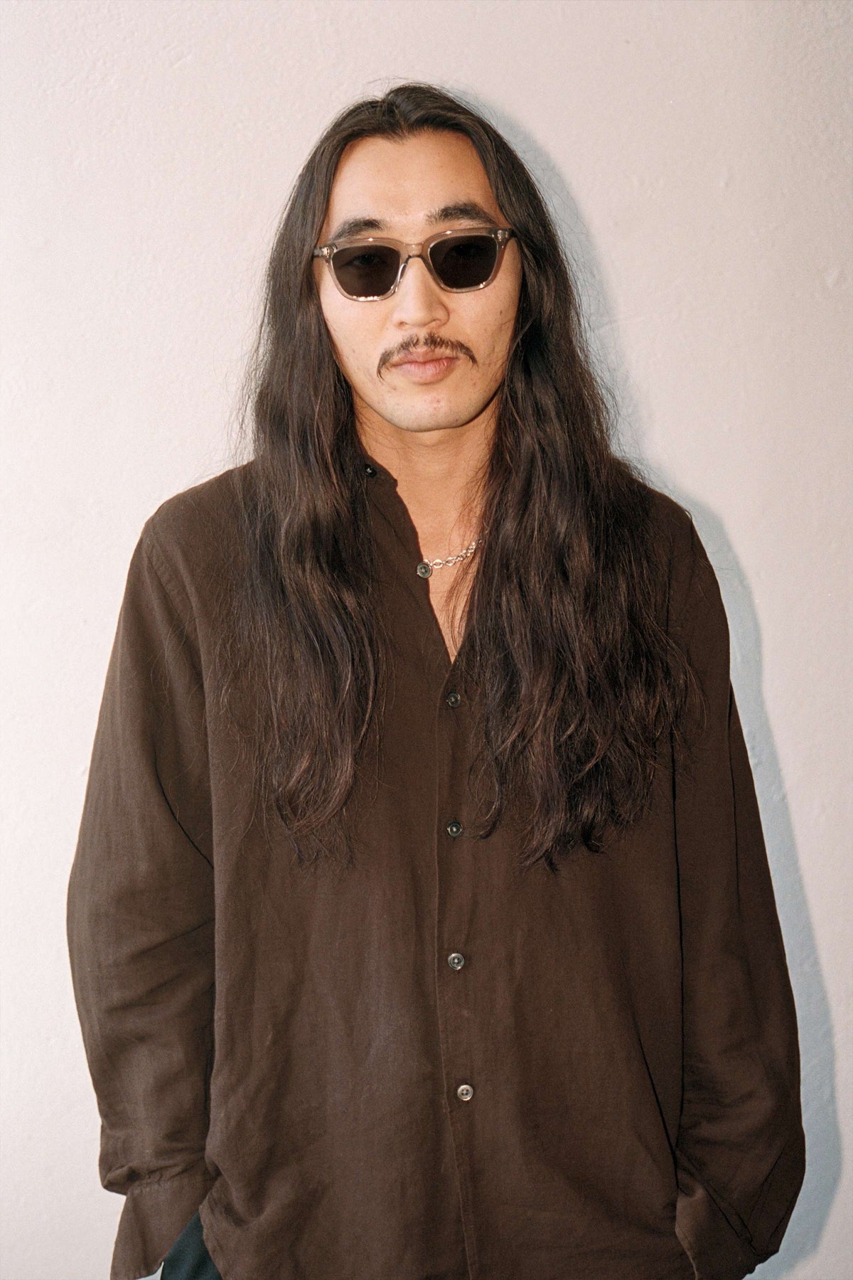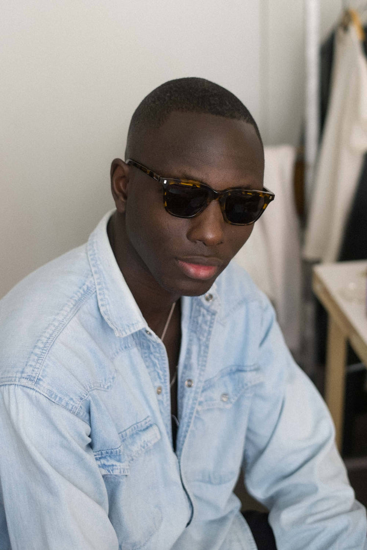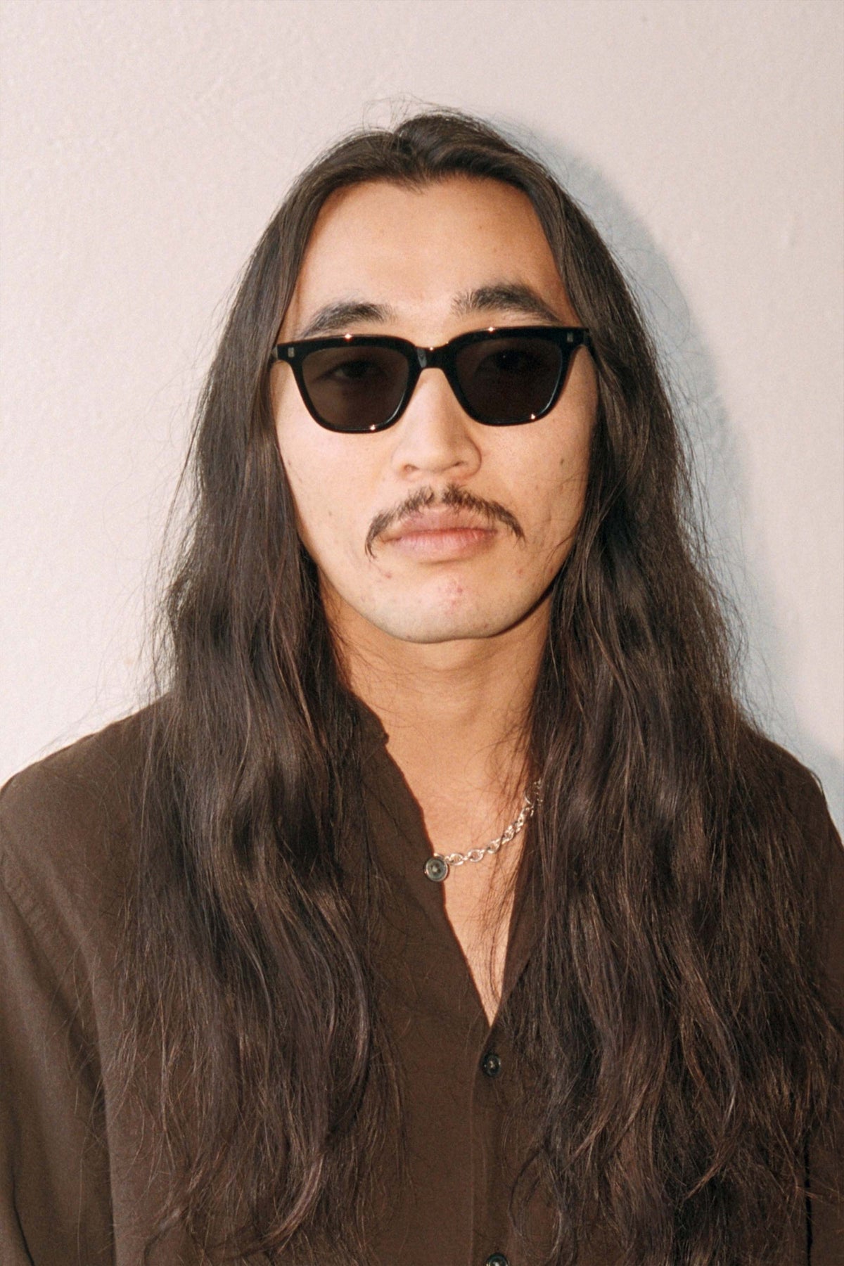 スクエアのレンズに長方形のリベット。シンプルなスタイルのようで、個性溢れるモデル。