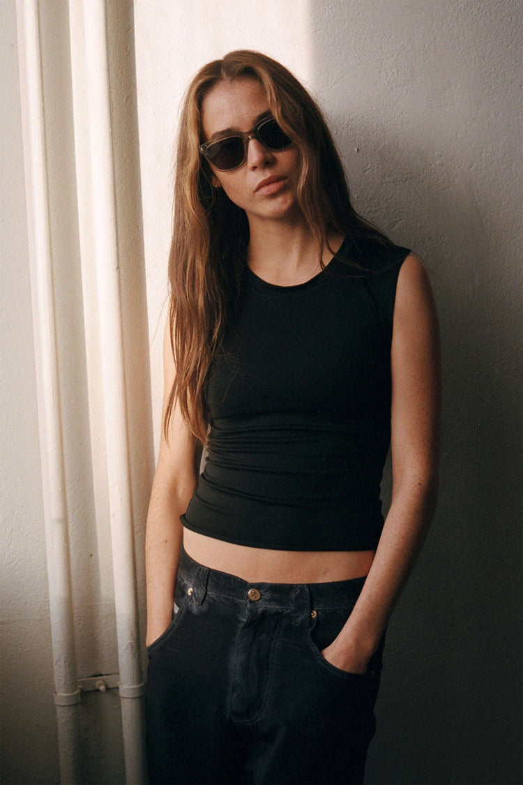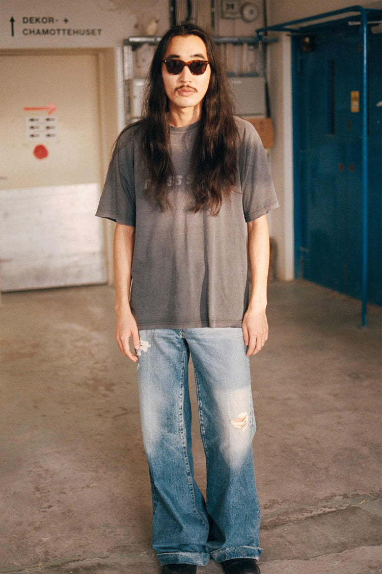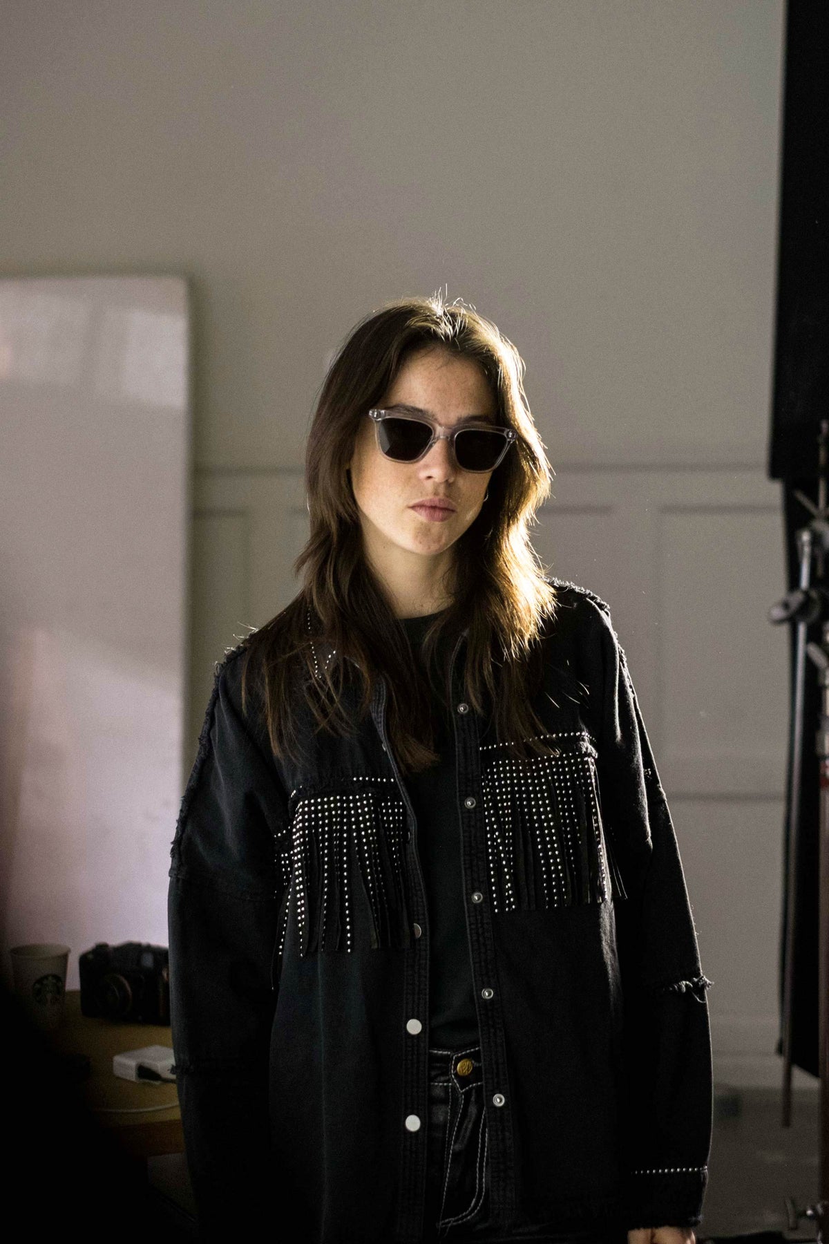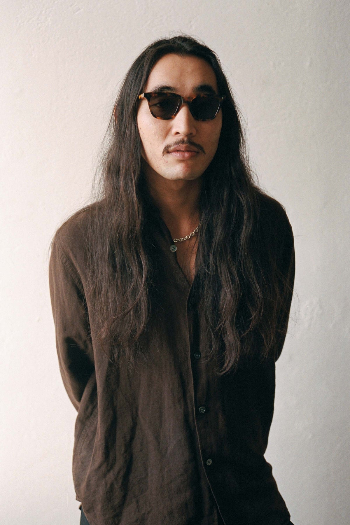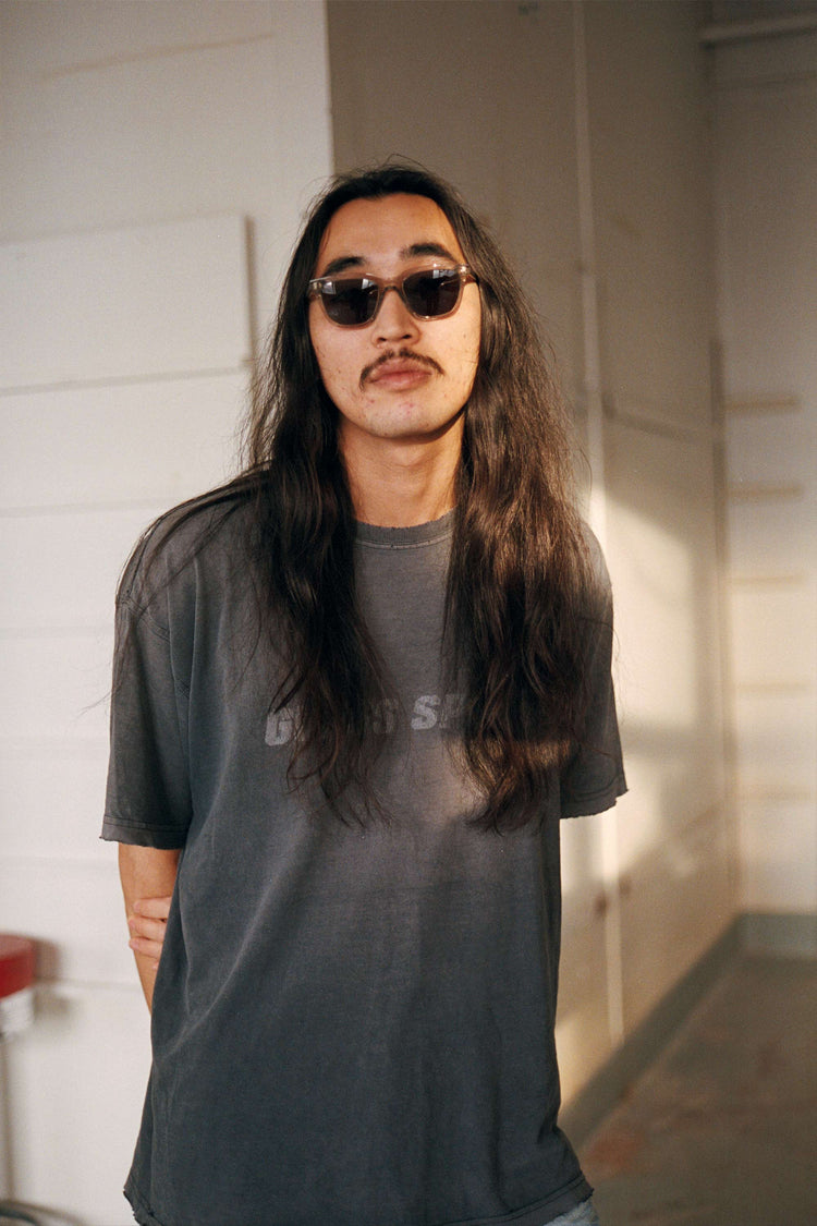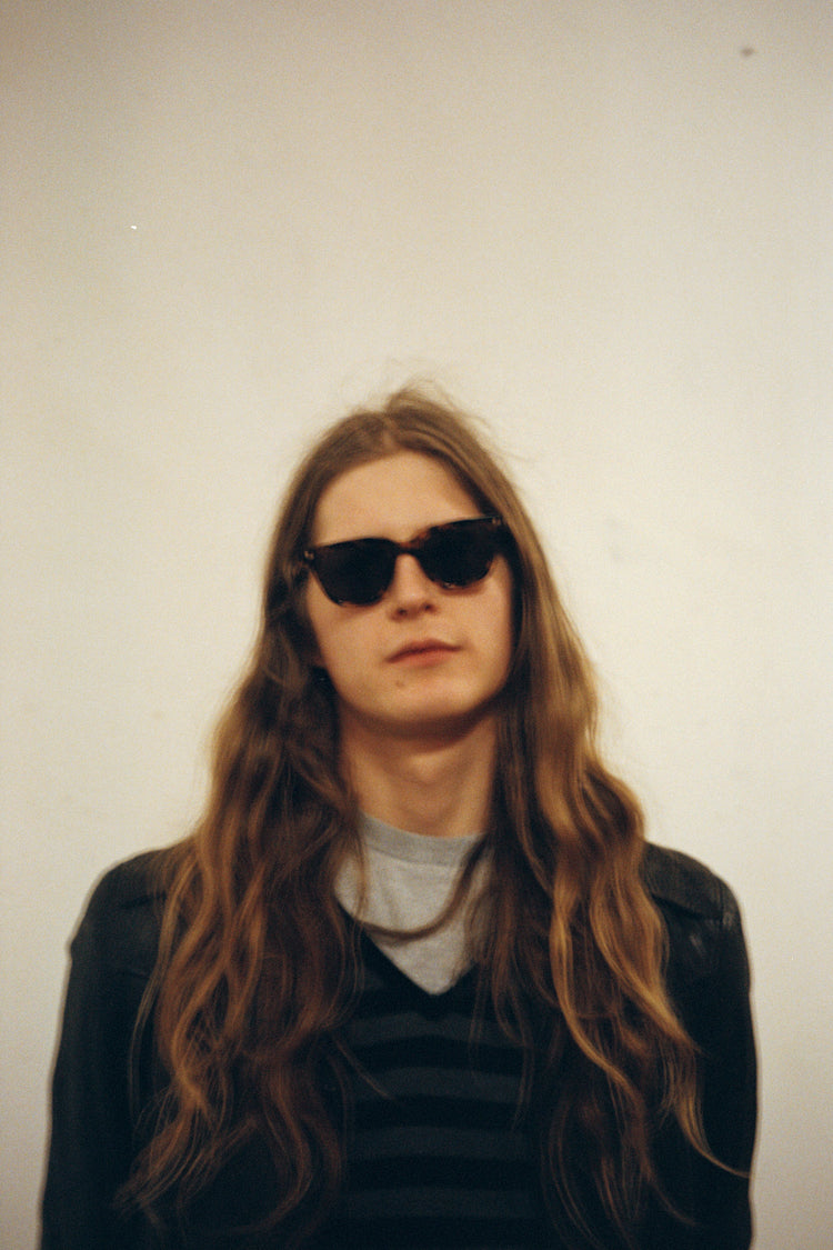 スクエアのレンズに長方形のリベット。シンプルなスタイルのようで、個性溢れるモデル。